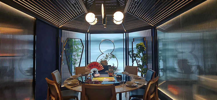 3、環(huán)境氛圍照明設(shè)計,這是餐飲空間設(shè)計進入到藝術(shù)品位的高級階段了。這時候的燈光設(shè)計包含了照明和色彩心理學、環(huán)境陳設(shè)藝術(shù)等多種美學領(lǐng)域,照明燈具的外觀款型也成了燈光設(shè)計的重要工作,燈具基本上都需要專屬定制,必須完全符合品牌的調(diào)性,定制的燈具也是整個空間用餐氛圍的重要組成部分。通過以光與色彩營造出符合顧客心理需求的氛圍,追求更高的生活品質(zhì)。品深餐飲設(shè)計多年服務(wù)的杭幫菜品牌——二小姐的店.觀瀾店,整個照明完全與空間氛圍融為一體,讓顧客流連忘返,嘖嘖驚嘆!