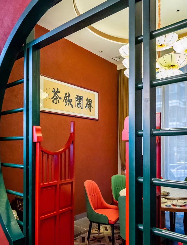品深餐飲設(shè)計總結(jié)一句話形容悅得閑茶樓整體色彩搭配主題:紅配綠,奢華典雅有活力;大紅配大綠,富貴吉祥更添財氣。