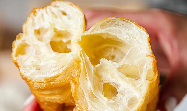 絲瓜囊狀”橫切面。而蘩樓的油條比其他茶樓的都大,比一個正常
