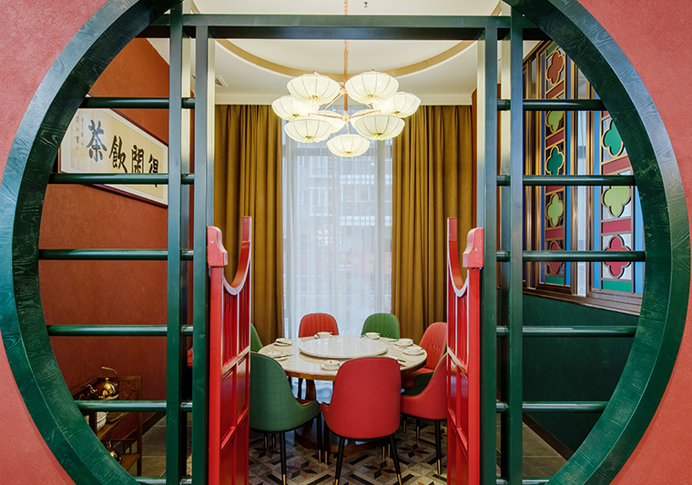 ,通過“紅配綠,大紅配大綠”這種大膽的色彩運(yùn)用,將“得閑飲茶”的廣式休閑飲食生活文化營造的非常鮮明,時(shí)尚又極富歷史厚重感,深受廣大顧客的喜愛,為門店創(chuàng)造了持續(xù)穩(wěn)定的客流。