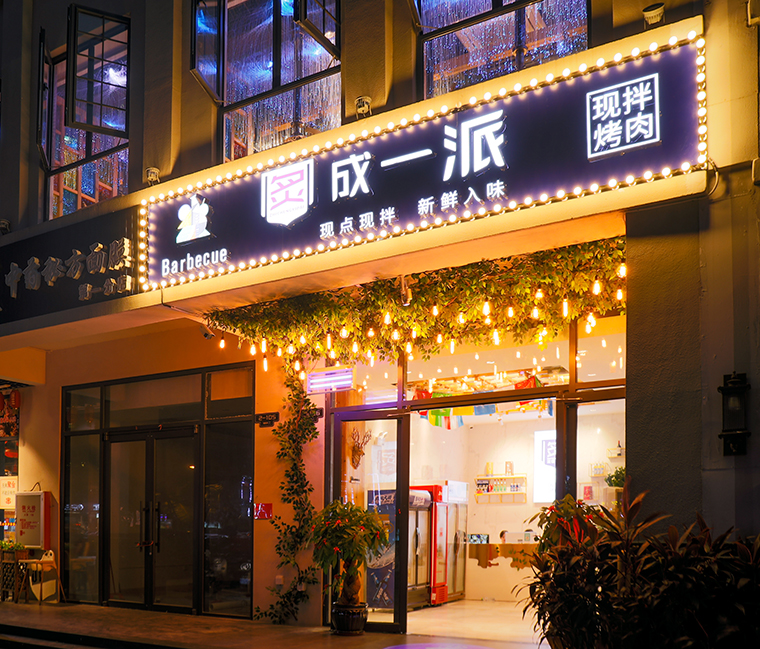 炙成一派作為海口首家現(xiàn)拌烤肉,具有明顯的市場先發(fā)優(yōu)勢,在空間中通過氛圍體驗,品牌訴求,在消費者心目中植入現(xiàn)拌烤肉就是炙成一派,將品牌等同于品類。通過空間的視覺體驗,燈光感受,食物的味道,家具軟裝的觸感體驗,讓顧客能放松心情,享受美食,有情懷,有情調(diào),有趣味。顧客置身其中,心靈宣泄,釋放壓力,最終產(chǎn)生品牌的粘性和較高的復(fù)購率。