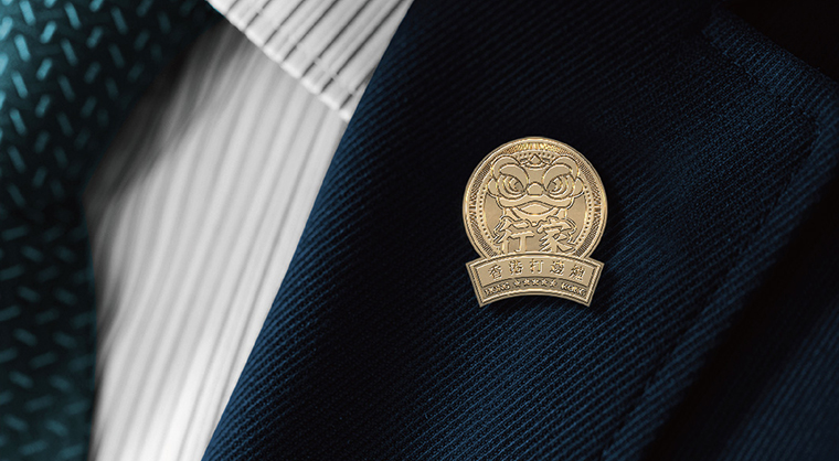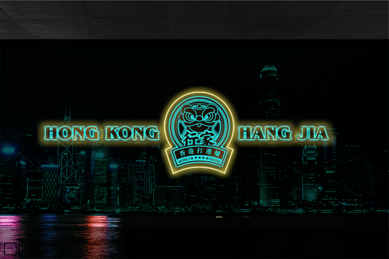 品牌記憶點:南派醒獅+香港海洋藍+玫瑰金不銹鋼+品牌元素在空間中應用
