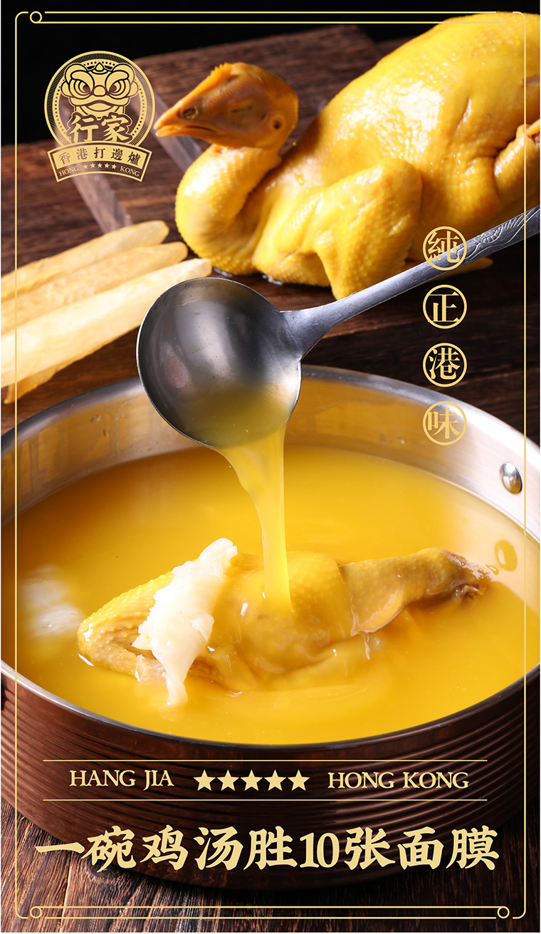 形象定位:香港老字號品牌,輕奢用餐環境,幾十年專注花膠雞,純正香港打邊爐。